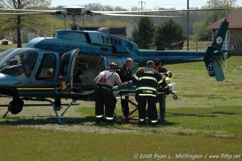 4/18/2008 – At 1410 hours Sussex County E.O.C alerted Station 81, Medic 102, Medic 107, Trooper 2, and Station 74 EMS for a reported MVC involving a motorcycle in the 32000 Block of Bi-State Blvd.