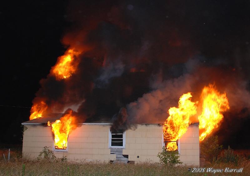 7/14/2008 – At 1:56am fire crews from Sta.74 Delmar, Sta.81 Laurel and Sta.79 Gumboro were alerted for a structure fire on Old Stage Rd just south of Whitesville Rd in Delmar. Medic 102 was the first arriving unit to find an abandoned house with heavy fire coming from side A. 74 Command arrived and established Old Stage Rd Command and advised incoming units off the situation and told them to protect a 1000 gallon propane tank close to the structure. Crews held a defensive attack mode to protect firefighters from the risk of injury. The alarm was put under control at 3:22am.