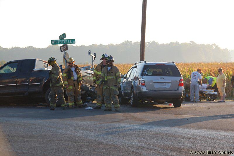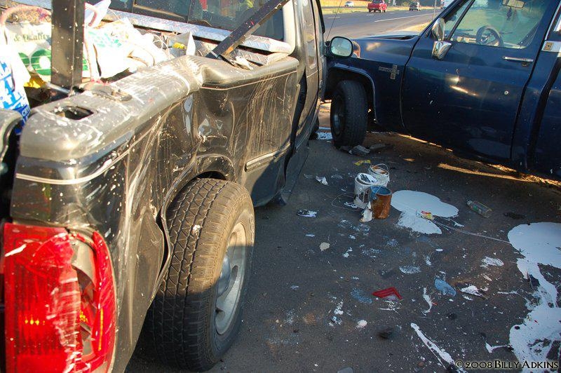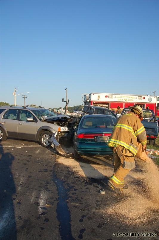8/22/2008 – At 7:07am August 22, 2008 – Sussex County EOC alerted Station 74 (Delmar) for a MVC with Injuries at the intersection of Whitesville Rd. and Sussex Hwy. (US13 North) Crews arrived to find 4 cars involved, with 1 patient (who was transported to PRMC). 2 pickup trucks, 1 station wagon and 1 car were involved, including a truck carrying house paint. Crews remained on scene for about 45 minutes for cleanup. Whitesville Rd. was shutdown along with 1 lane of northbound US13 during the alarm. It is unknown if charges are pending.