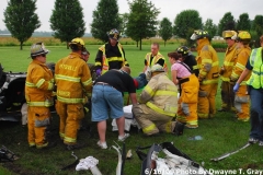 6/19/2009 – Just before 7am on June 16, 2009 Station 6 and Station 7 (Pittsville) were alerted for a Motor Vehicle Collision with Entrapment on Mt. Hermon Rd. in the area of Berry Rd. As units were responding, Central advised that they received a call advising 1 vehicle that was overturned with 1 patient trapped. 651 (Spec Ops Lt. See) arrived POV and confirmed the report and advised that the car had struck a utility pole as well. RE604 (617 E. Tyler) arrived and verified vehicle stabilization and assessed the car for the best access to the patient. The driver side was chosen and the Hurst spreader and Cutter were put to work. Once the doors were removed, the ‘B’ post was cut out and the back of the driver seat was cut. With everything out of the way, the patient was extricated in just under 20 minutes and was transported to PRMC by PM A-6. Mt. Hermon Rd. was closed during the incident and traffic control was provided by Station 7 Fire Police.