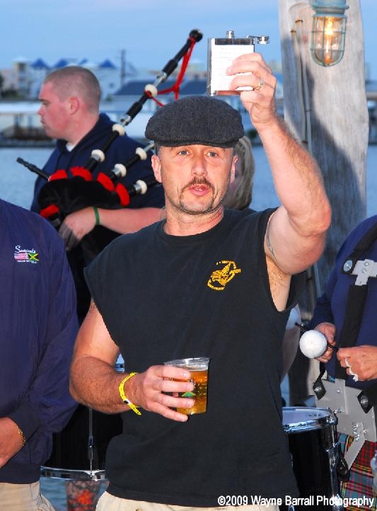 6/23/2009 – The Ocean City ‘FOOLS’ Chapter held its annual fundraiser at Seacrets Night Club on June 17th 2009, during the MD State Fireman’s Convention. Several companies sponsored the event to help raise funds for families of fallen firefighters both locally and nationwide. Montgomery County Firefighters and The Fire Brigade of Greater Baltimore led the event through several songs of pipes and drums. One tradition of the Fools group is to gather at the end of the pier and toast the memory of firefighters who have passed. Normally the last toast would go to the ground where our fallen brothers and sisters lay, but because Ocean City sits on the water this chapter sets the last toast to sea.