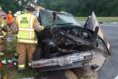 Mardela Springs Fire/EMS was dispatched for a MVC with Rescue at the intersection of Ocean Gateway (US 50) and Route 54. Paramedic A-9 arrived first and found a Chevrolet S-10 pick-up truck in the median having sustained major damage, resulting from a traffic collision with a dump truck. A-9 reported two occupants in the pick-up and confirmed entrapment. Rescue-Engine 906 arrived next and put hydraulic cutters in service and partially removed the roof of the pick-up to allow for patient extrication. Ambulance B-9 arrived and that crew co-ordinated supplying EMS and c-spine equipment from each ambulance to the crews attending the patients. Command requested an additional ALS provider to the scene and a paramedic ambulance from Hebron responded. The first patient extricated was transported by Hebron’s unit, Priority 1 to PRMC. The second patient was transported by Paramedic A-9, also Priority 1, to PRMC. Hebron Rescue-Pumper 501 responded to the scene to assist with extrication.