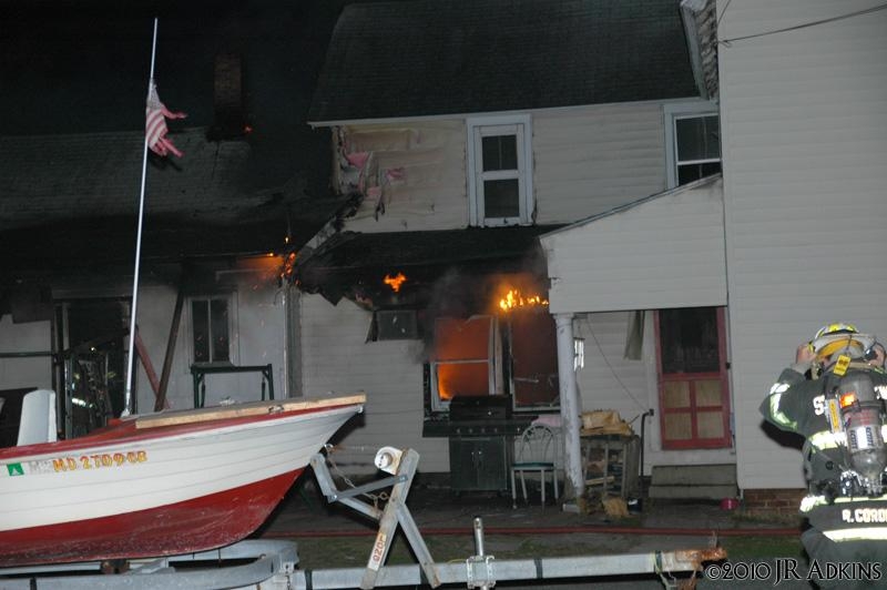 3/25/2010 – At approximately 1930 hours, Dorchester County Station 26 (Eldorado-Brookview) was alerted for a working structure fire at 5603 Newharts Mill Road. Rescue Captain, Paul Dixon went out with Engine 26-1 and 4. Upon arrival he reported a fully involved 2 story story wood frame structure. Officer 26-1 (Dixon), established Newharts Mill Road Command.