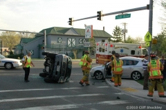 4/8/2010 – At 6:01pm Station 2 responded to a 2 car collison at the intersection of Salisbury Parkway & Truitt Street. A Mazda 3 and a Mercury Mountaineer SUV collided, turning the SUV on its side. There was at least 1 patient transported, and a few refusals. The scene was cleared in about 20 minutes.