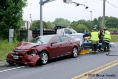5/13/2010 – At approximately 8:00 AM Station 60 (Easton) and Paramedic 96 were dispatched for a 10-50 PI in the intersection of Black Dog Alley and Matthewstown Road (Route328). Paramedic 96 arrived on location and confirmed 3 vehicles involved with one entrapment. Rescue 61 arrived; FF Chance established command and the crew made quick work of the extrication. Two patients were transported to the Memorial Hospital at Easton with minor injuries.