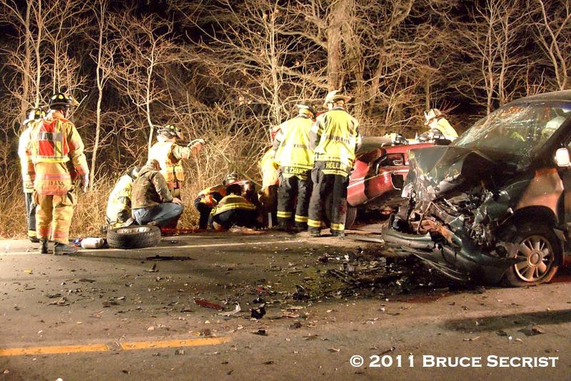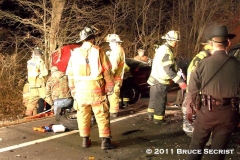 Utility 57 (B. Messix) arrived on location and reported two vehicles involved and it appeared to be serious. Officer 503 (B. Messix) established “Cordova Road” command. Crews from Engine 51 and Engine 52 extricated one patient with heavy entrapment to the lower extremities from the car while crews from Rescue 61 and Engine 68 removed one patient from the back seat of the van. Trooper 1 and Trooper 6 each transported one patient to the University of Maryland Shock Trauma Center in Baltimore.