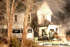 1/30/2011 – At 1:30 AM Talbot Center dispatched Station 60 (Easton) and Station 50 (Cordova) for a structure fire at 9338 Gannon Road. Chief 60 (J. McNeal) arrived on location to find a two story wood frame structure, with fire showing. Officer 601 (J. McNeal) established “Gannon Road” command. Crews were able to contain the fire quickly, however due to the location of the fire, crews had to wait until the electric was shut off to the house before they could completely extinguish the fire and finish overhaul.