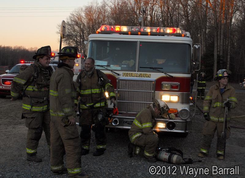 2/13/2012 – On 2-13-2012 in 21 degree weather the Federalsburg Fire Company was alerted for a structure fire at 3079 Harper Rd east of Federalsburg. On the assist were Sta.87 Seaford and Sta.72 Bridgeville. While enroute Bridgeville was alerted to their own fire call in their district so command released them and requested Hurlock and Blades to the scene. Crews first on scene stretched one line thru the front door when they were met with heaving fire in a back room of the single story home. Other crews assisted with ventilation and overhaul of the structure. Crews were on scene for about 1 ½ hours. The Maryland State Fire Marshal’s office is investigating the cause of the blaze.