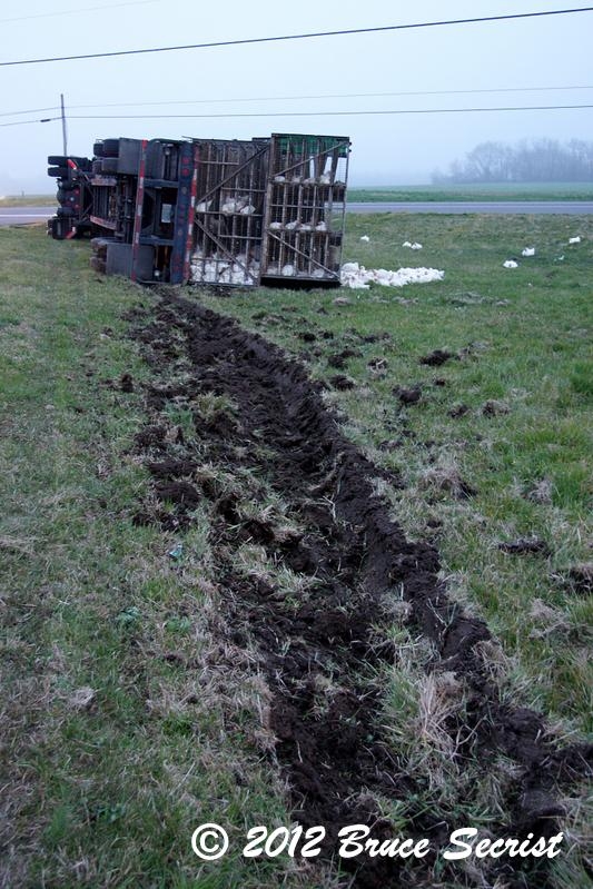 3/16/2012 – At approximately 6:00 AM Caroline dispatched Station 300 (Denton) and Paramedic 13 for an MVC in the area of 24462 Willow Pond Road. Units arrived on location to find a tractor trailer loaded with live chickens overturned on the edge of the roadway. The truck did not have any leaking fluids and the driver refused treatment at the scene. Officer 315 (W. Fretterd) had command.