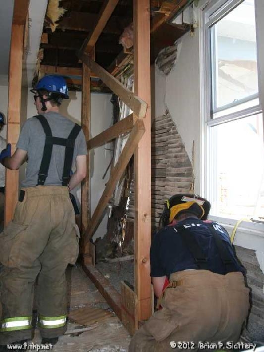 Command 43 with 43-16 (Tucker Dempsey) and KCEMS 604 (EMS Lt. Dave Mick) arrived and began the assessment for shoring up the structure. Rescue 51 and Light & Air 51 arrived shortly after, along with other members of the Special Ops team. Crews shored up the interior prior to removing the vehicle, then shored up the porch. Units cleared the incident around 18:30.