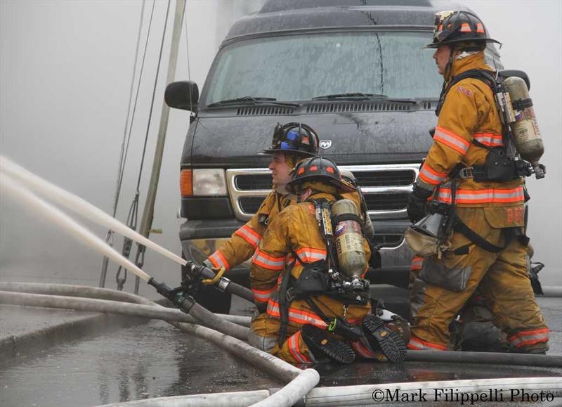2/9/2013 – At 15:12hrs on 2/9/2013 Wicomico Central alerted Salisbury Stations, 16, 1 and 2 for a reported commercial structure fire at 600 S. Division St in the area of the S Curve on RT 13. A Salisbury paramedic unit at PRMC with a patient advised first responding units of heavy smoke visible from the ER. Asst Chief Obarsky arrived on location reporting a commercial structure with heavy smoke and fire showing. First arriving engine 16-1 established a water supply and made an aggressive attack on the fire from a rear garage door. Additional arriving units placed multiple hand lines in service and established additional water supplies to support a master stream operation. Due to the size of the fire and manpower needs command requested mutual aid from Station 3 Fruitland and units to shut down Eastern Shore Dr due to multiple 5 inch lines laid across the road. After several minutes of attempting an attack on the fire from the interior command ordered an evacuation of the building and all units to operate from the exterior due to the failing roof. At the height of the fire Tower 16, Truck 1 and Truck 2 were all in service providing master streams to the roof of the building. Command placed the fire under control at approximately 1700hrs; units remained on the scene for overhaul and to assist the State Fire Marshall. After investigation the State Fire Marshall determined that the fire was ignited when a heater was used in a garage where gas fumes were present.