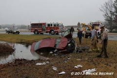 2/23/2013 – At 1:04 PM Caroline dispatched Station 300 (Denton) and Station 200 (Preston – Dive Team) for an MVC with a vehicle overturned in the water in front of 24242 Shore Highway. Units arrived on location to find one vehicle overturned in approximately 4 feet of water and both occupants had be extricated by an off duty police officer. Paramedic 391 and Paramedic 392 each transported one Priority 1 patient to the University of Maryland Shock Trauma Center in Baltimore. Aviation was down due to the inclement weather. The passenger of the vehicle later succumbed to her injuries.