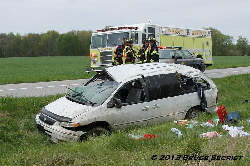4/23/2013 – At approximately 11:35 AM Queen Anne’s County dispatched Station 4 (Goodwill) and Station 80 (Queen Anne-Hillsboro) for an MVC with rollover in the area of 710 Starr Road. Units arrived on location to find one vehicle off the roadway with heavy damage. The lone occupant of the van was transported to the Queen Anne’s ER with minor injuries.