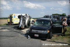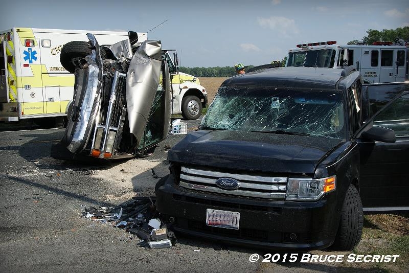 5/14/15 – Caroline dispatched Station 400 (Ridgely), Station 600 (Greensboro), Paramedic 391 and Queen Anne’s County Paramedic 500 for an MVC with rollover and possible entrapment on Oakland Road in the area of Benedictine Lane. Units arrived on location to find two vehicles involved with significate damage to both . Several patients were transported to local facilities with minor injuries.